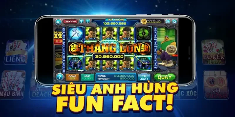 - Chủ đề Hero độc đáo: Thay vì những chủ đề quen thuộc như hoa quả, kim cương hay thần tài, tựa game mang đến một thế giới anh hùng đầy mới lạ. Các biểu tượng trong game được xây dựng dựa trên hình tượng các siêu anh hùng mạnh mẽ, tạo nên sự hứng thú và kích thích cho người chơi.